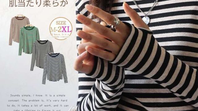 40代女性のデート服に最適な大人エレガントなボーダーカットソー。伸縮性素材で快適、通勤&休日デートに活躍します。